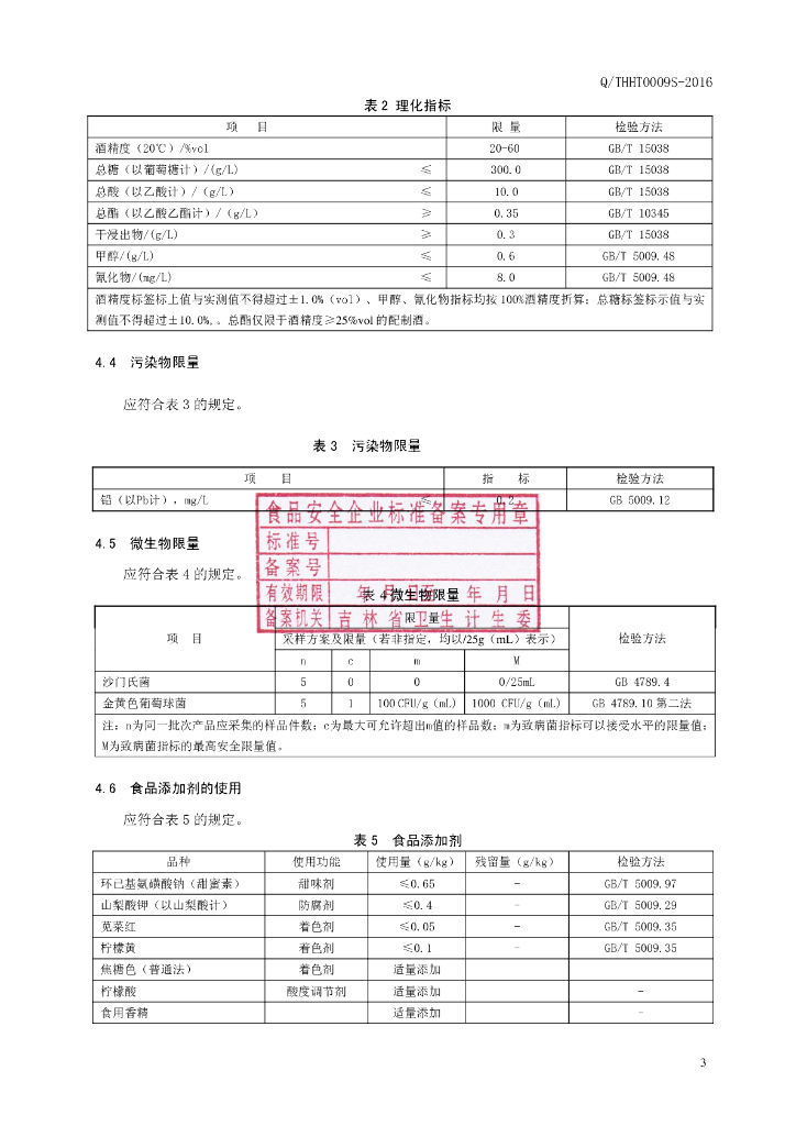 Q/THHT 0009S-2016 通化华特酒业有限公司 枸杞大枣小米酒