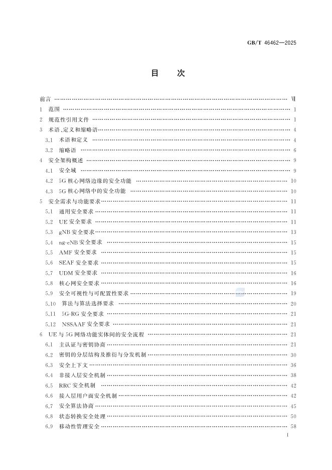 GB/T 46462-2025 5G移动通信网通信安全技术要求