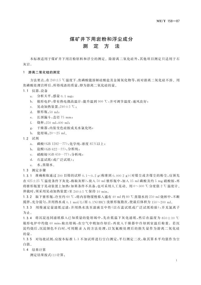 MT/T 158-1987 煤矿井下用岩粉和浮尘成分测定方法