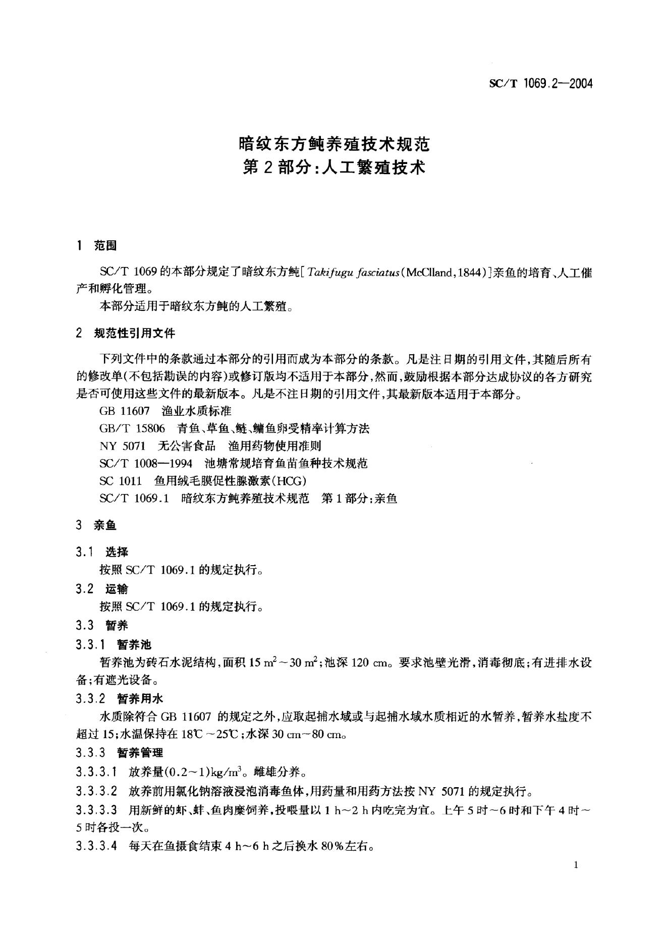 SC/T 1069.2-2004 暗纹东方鲀养殖技术规范 第2部分:人工繁育技术