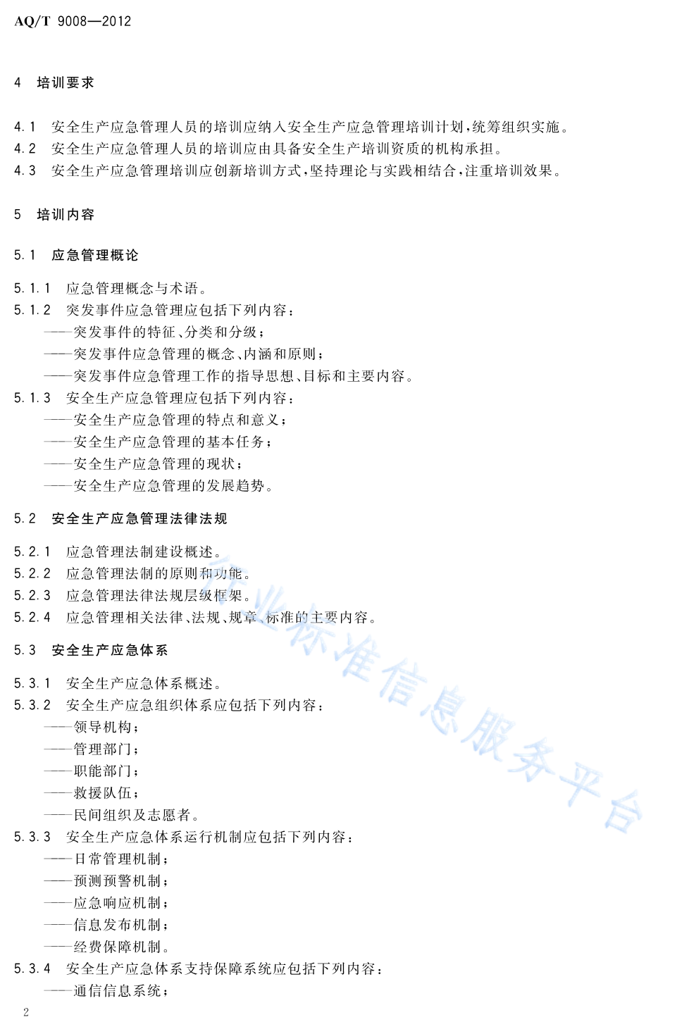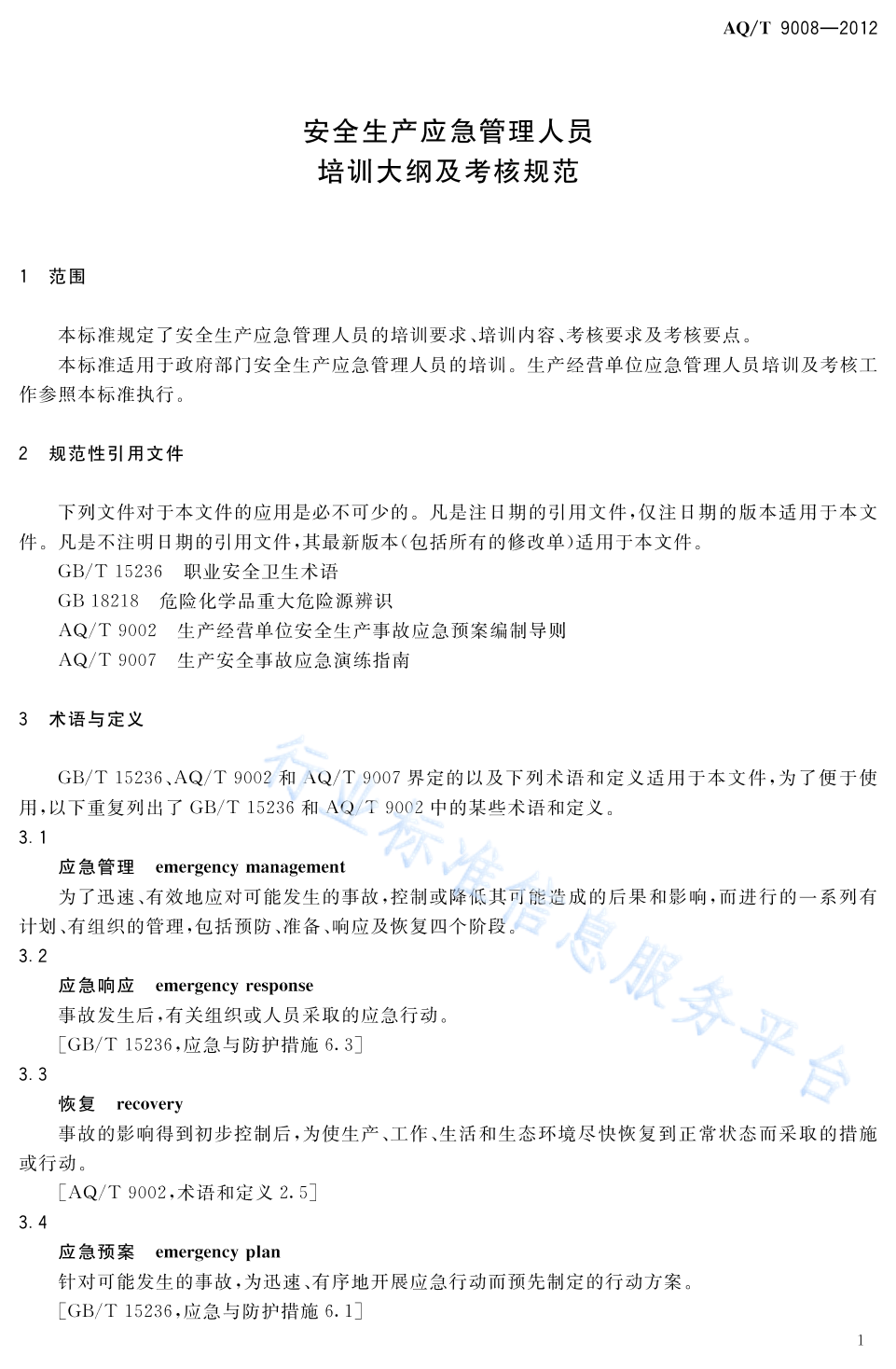 AQ/T 9008-2012 安全生产应急管理人员培训及考核规范