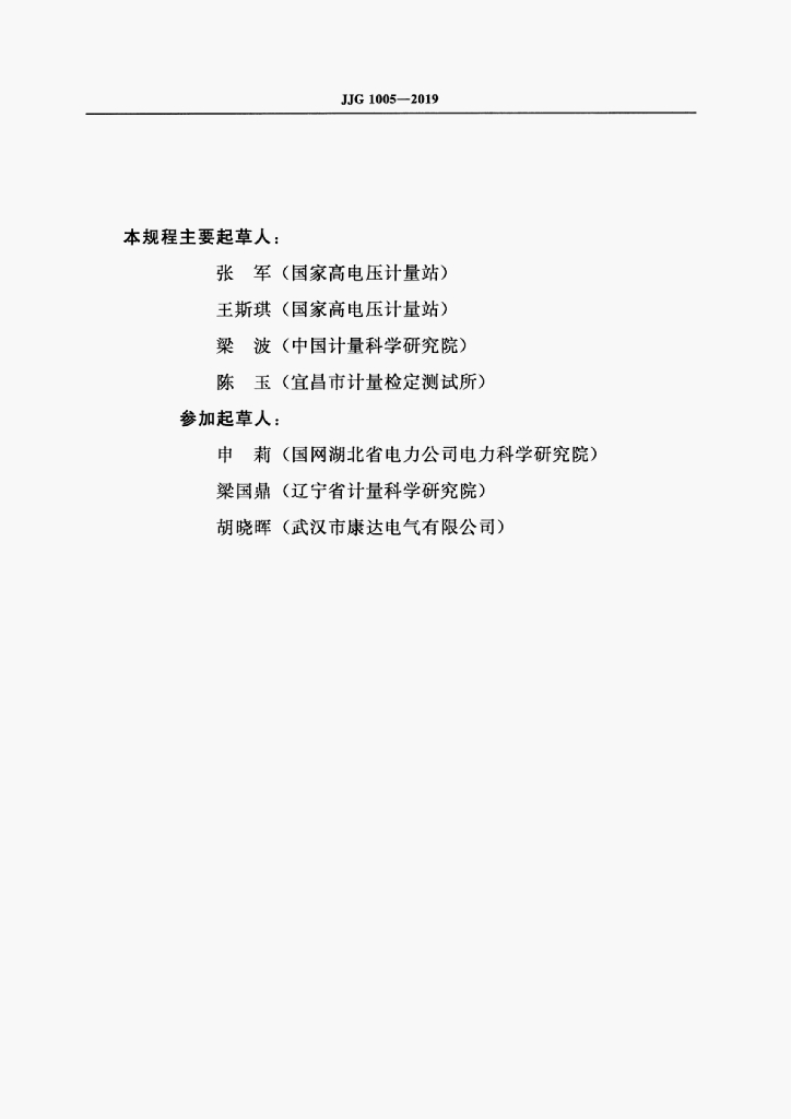 国家高电压计量站、中国计量科学研究院、宜昌市计量检定测试所、国网湖北省电力公司电力科学研究院、辽宁省计量科学研究院、武汉市康达电气有限公司