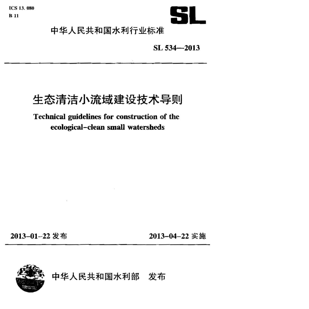 SL 534-2013 生态清洁小流域建设技术导则