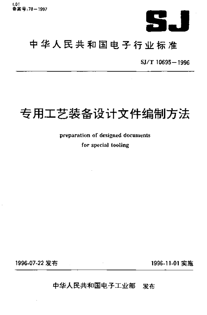 SJ/T 10695-1996 专用工艺装备设计文件编制方法