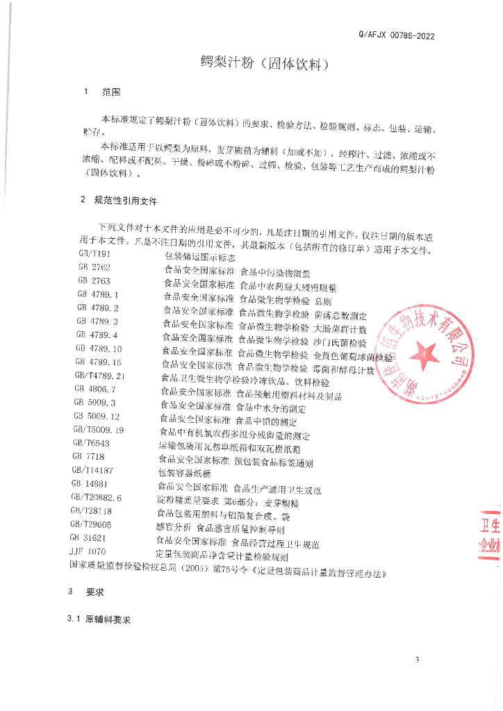 Q/AFJX 0078S-2022 鳄梨汁粉(固体饮料)