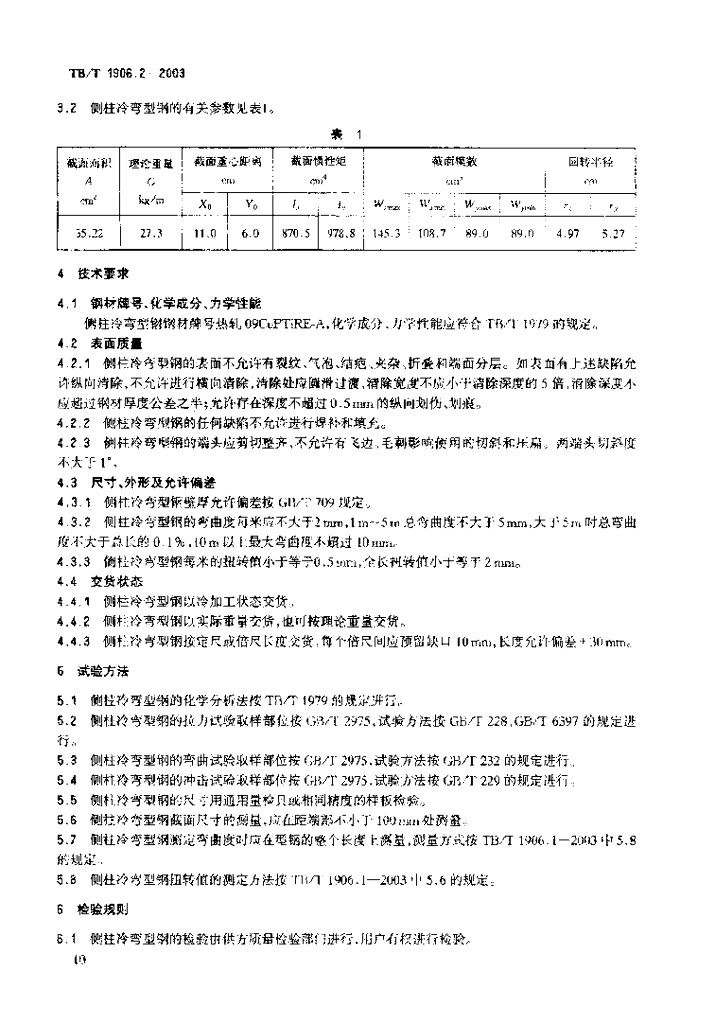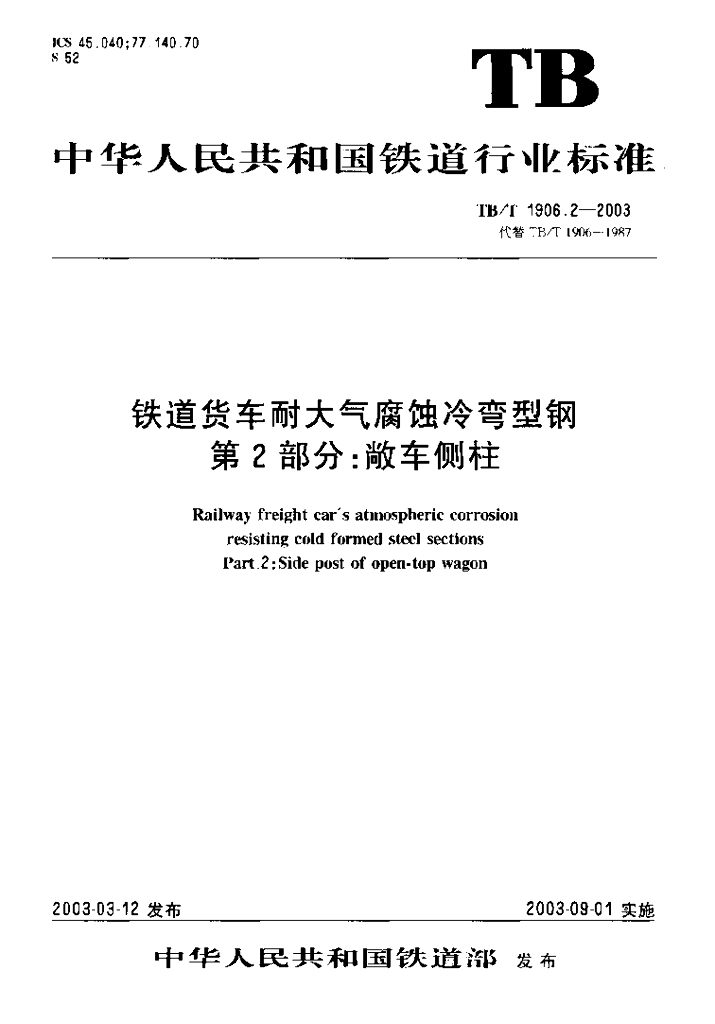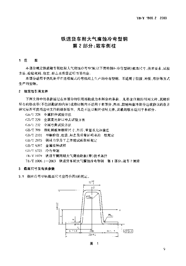 TB/T 1906.2-2003 铁路货车耐大气腐蚀冷弯型钢 第2部分:敞车侧柱