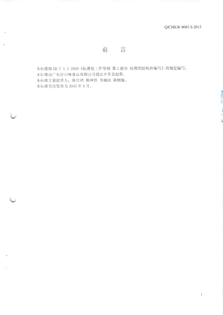 Q/CHKW 0005S-2015 广东好口味食品有限公司 调味酱