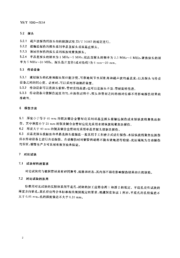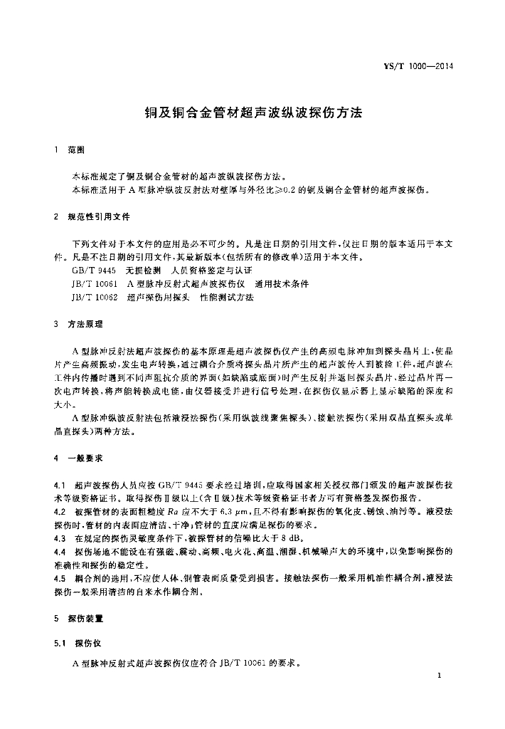 YS/T 1000-2014 铜及铜合金管材超声波纵波探伤方法