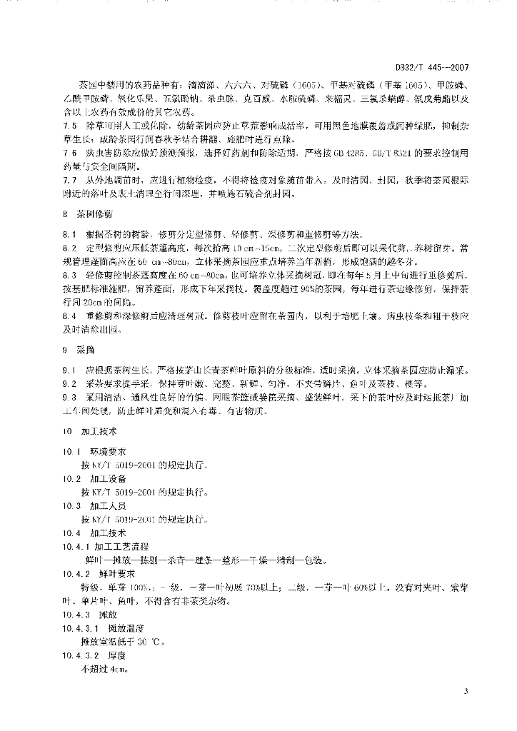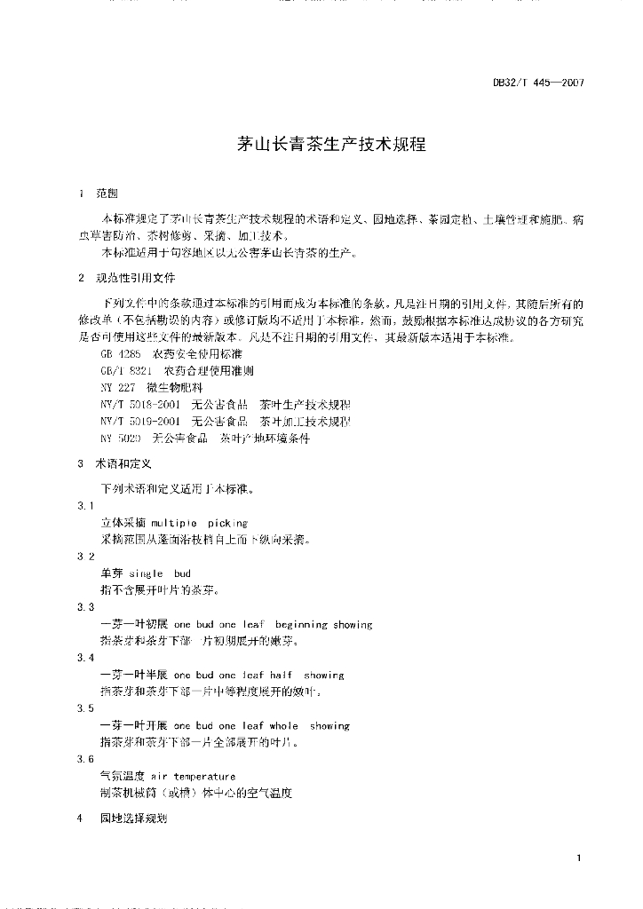 DB32/T 445-2007 茅山长青茶生产技术规程