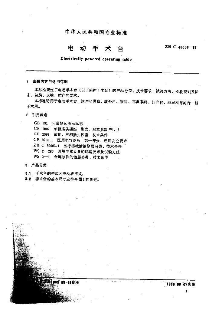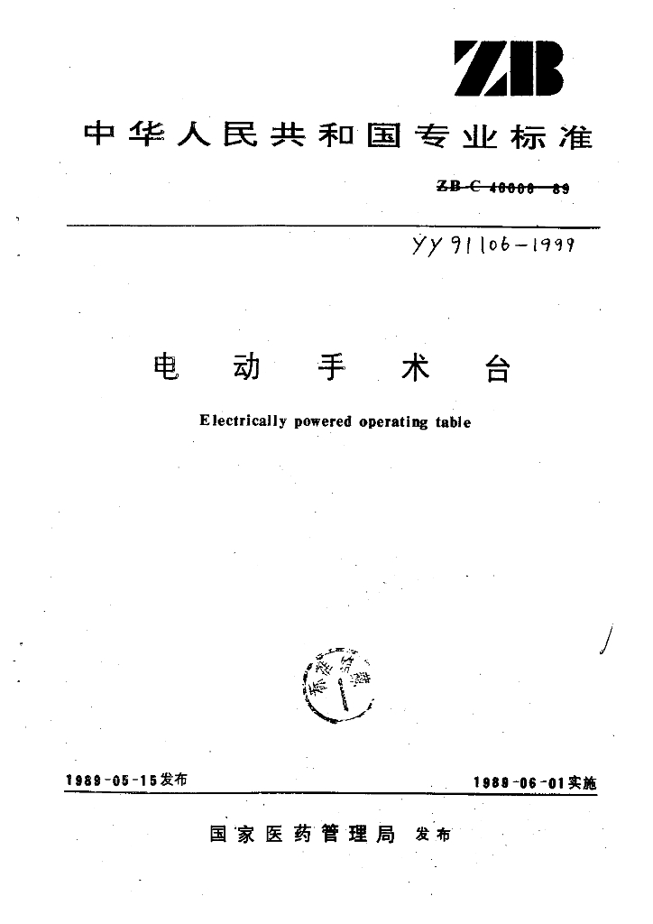 YY 91106-1999 电动手术台