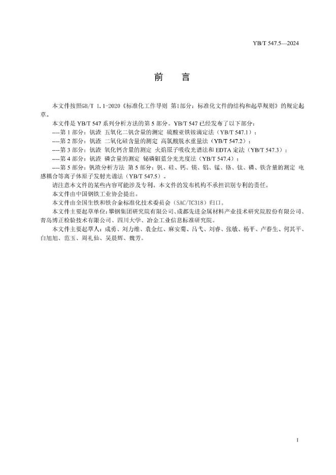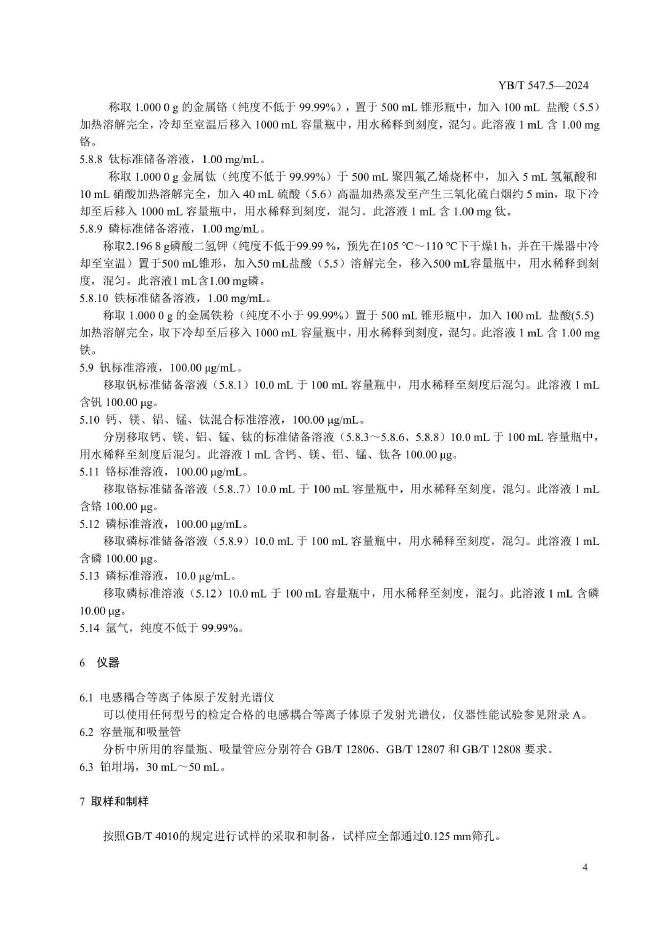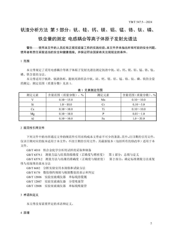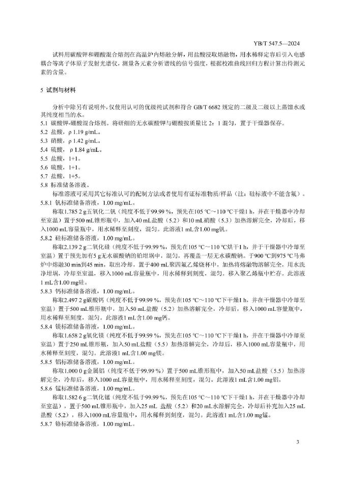 YB/T 547.5-2024 钒渣分析方法 第5部分:钒、硅、钙、镁、铝、锰、铬、钛、磷、铁含量的测定 电感耦合等离子体原子发射光谱法