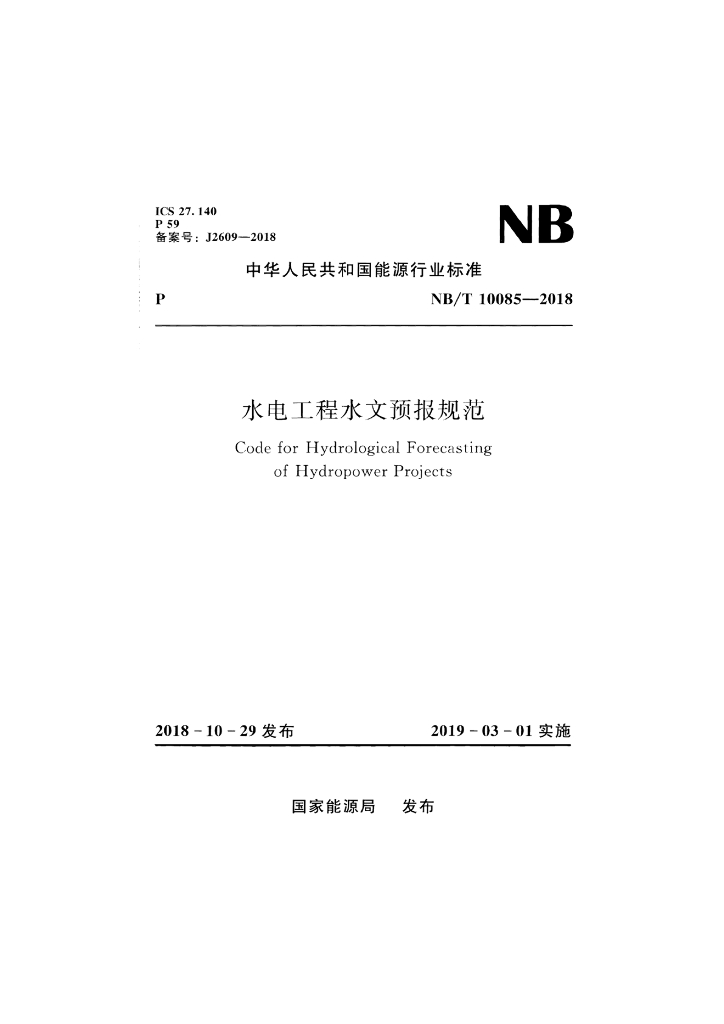 NB/T 10085-2018 水电工程水文预报规范
