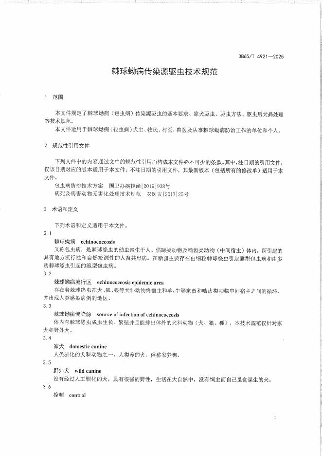 DB65/T 4921-2025 棘球蚴病传染源驱虫技术规范