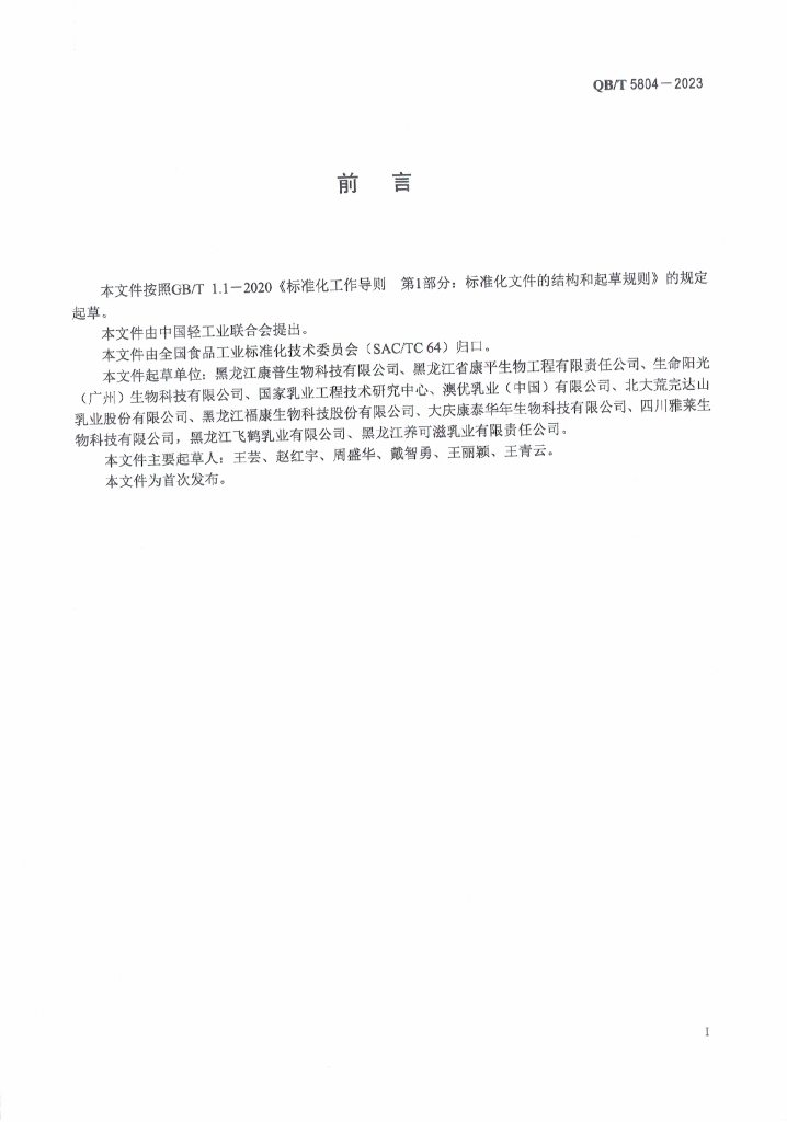 黑龙江康普生物科技有限公司、黑龙江省康平生物工程有限责任公司、生命阳光(广州)生物科技有限公司、国家乳业工程技术研究中心、澳优乳业(中国)有限公司、北大荒完达山乳业股份有限公司、黑龙江福康生物科技股份有限公司、大庆康泰华年生物科技有限公司、四川雅莱生物科技有限公司,黑龙江飞鹤乳业有限公司、黑龙江养可滋乳业有限责任公司