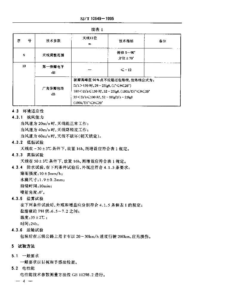 SJ/T 10649-1995 Ku波段卫星电视地球接收站天线通用技术条件