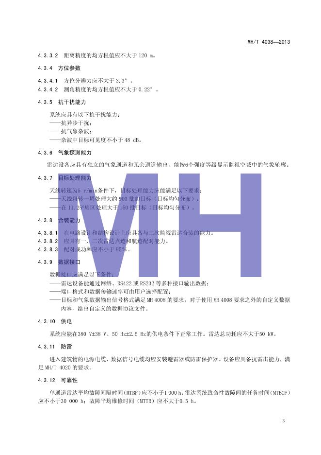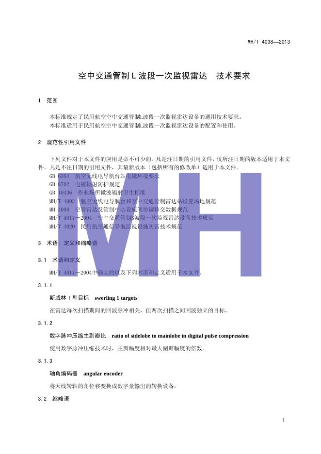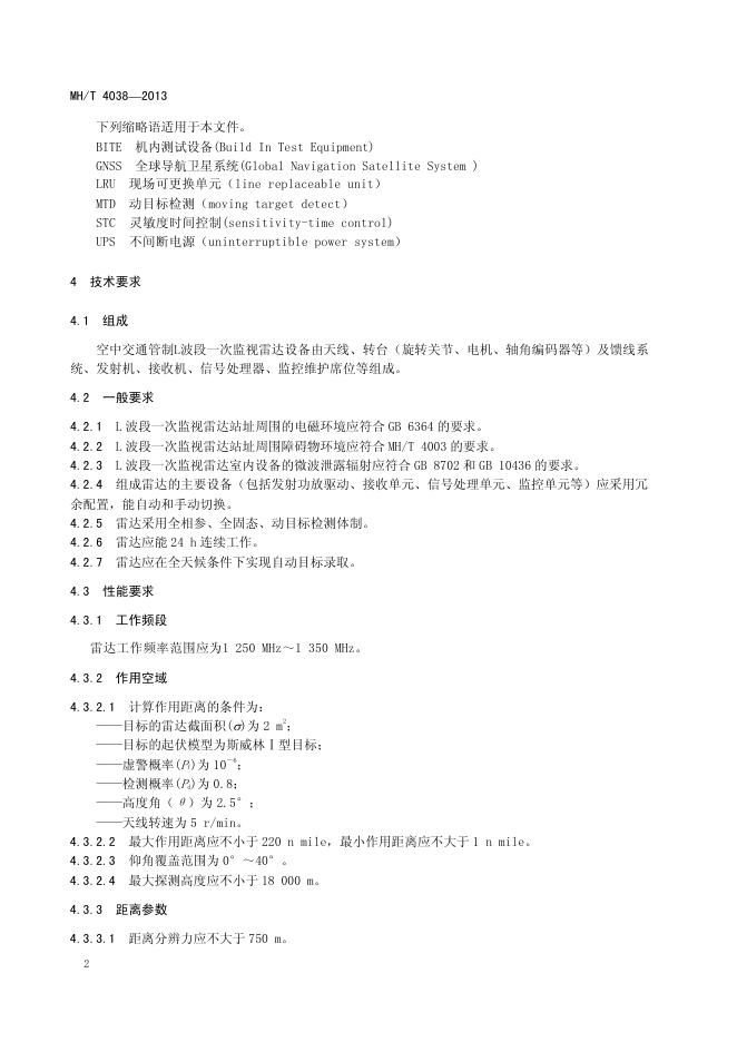MH/T 4038-2013 空中交通管制L波段一次监视雷达技术要求