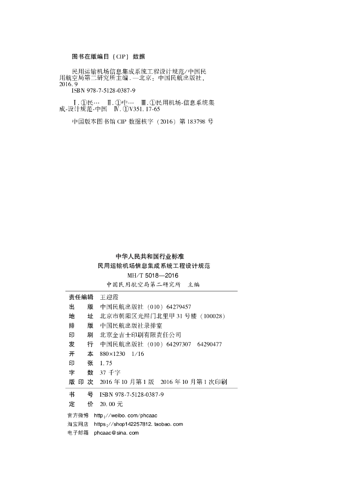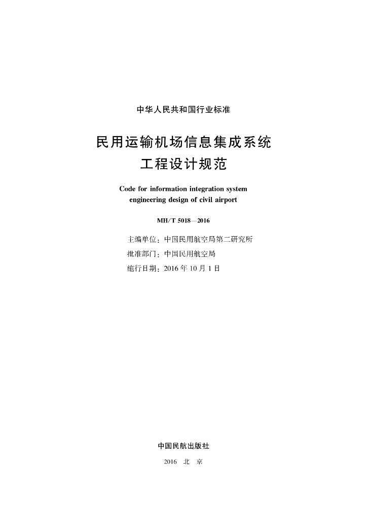 MH/T 5018-2016 民用运输机场信息集成系统工程设计规范