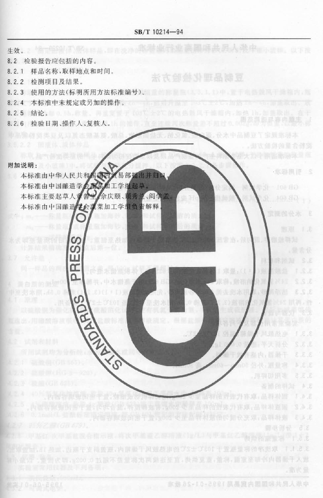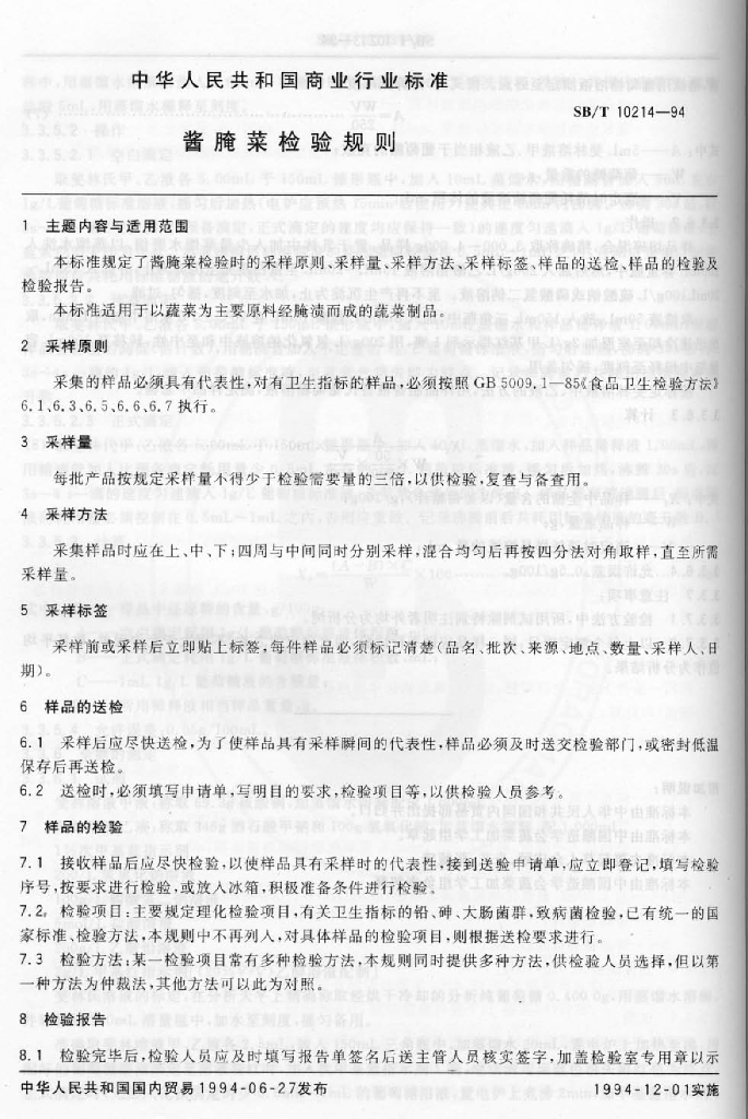 SB/T 10214-1994 酱腌菜检验规则