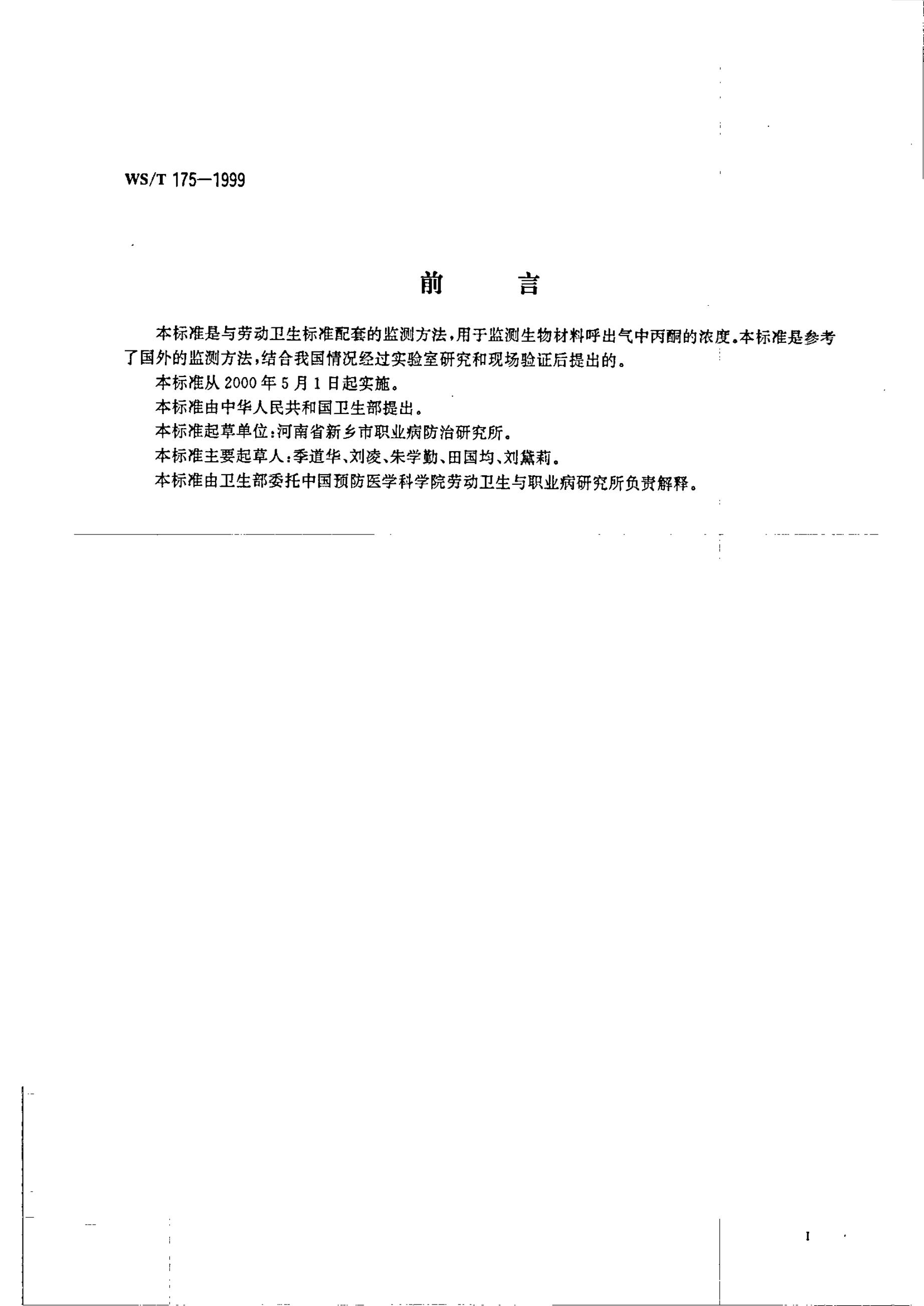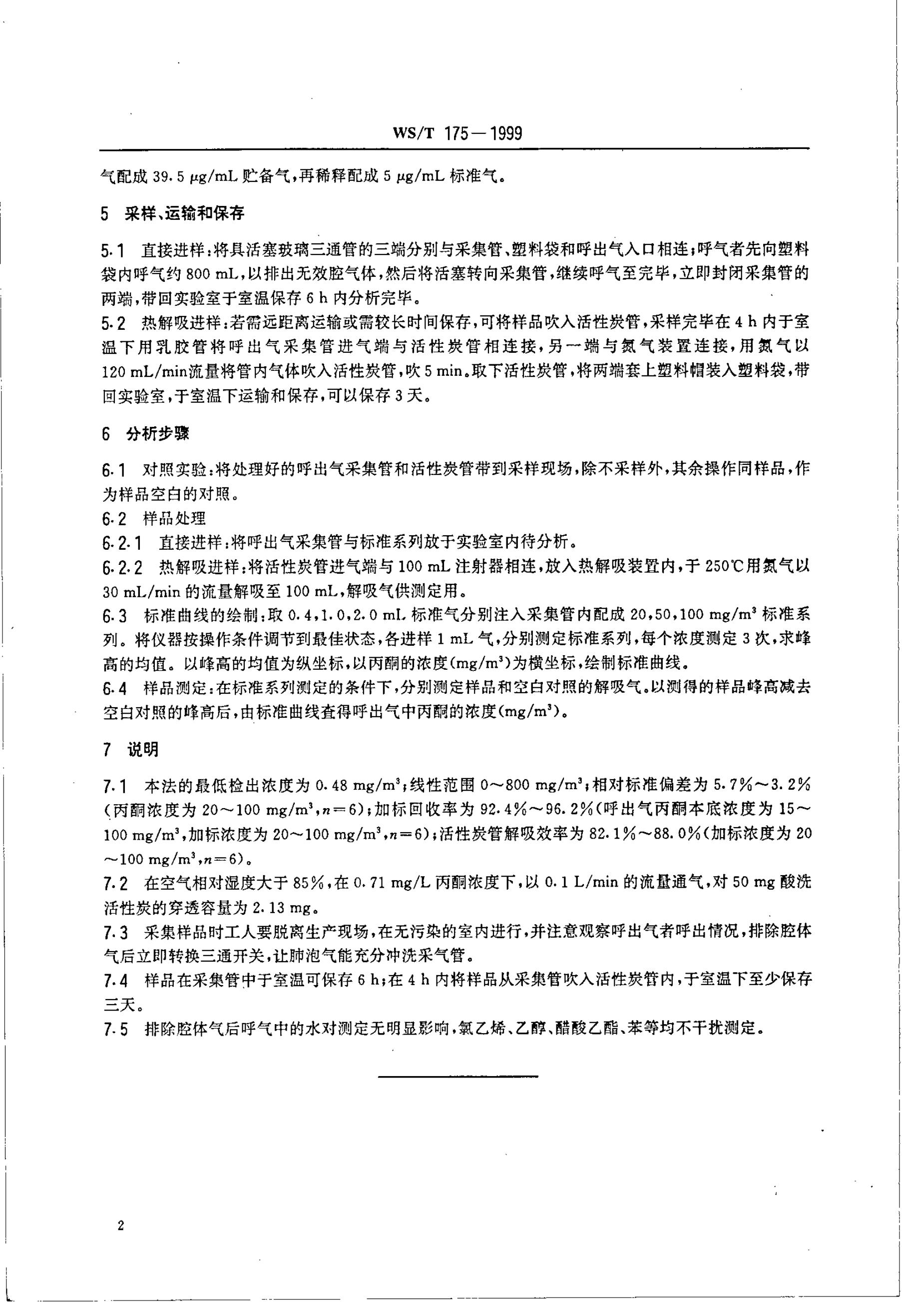 WS/T 175-1999 呼出气中丙酮的气相色谱测定方法