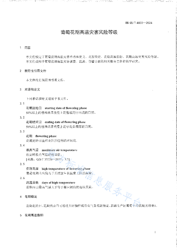 DB65/T 4833-2024 葡萄花期高温灾害风险等级