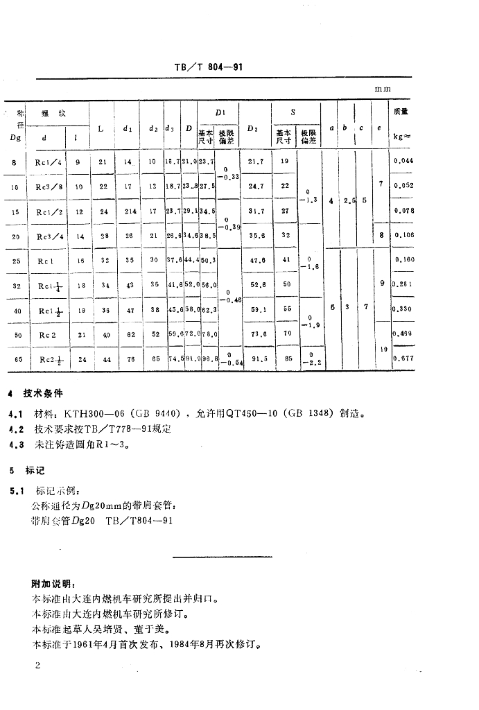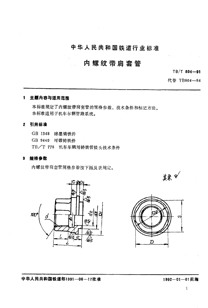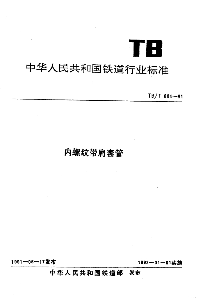 TB/T 804-1991 内螺纹带肩套管