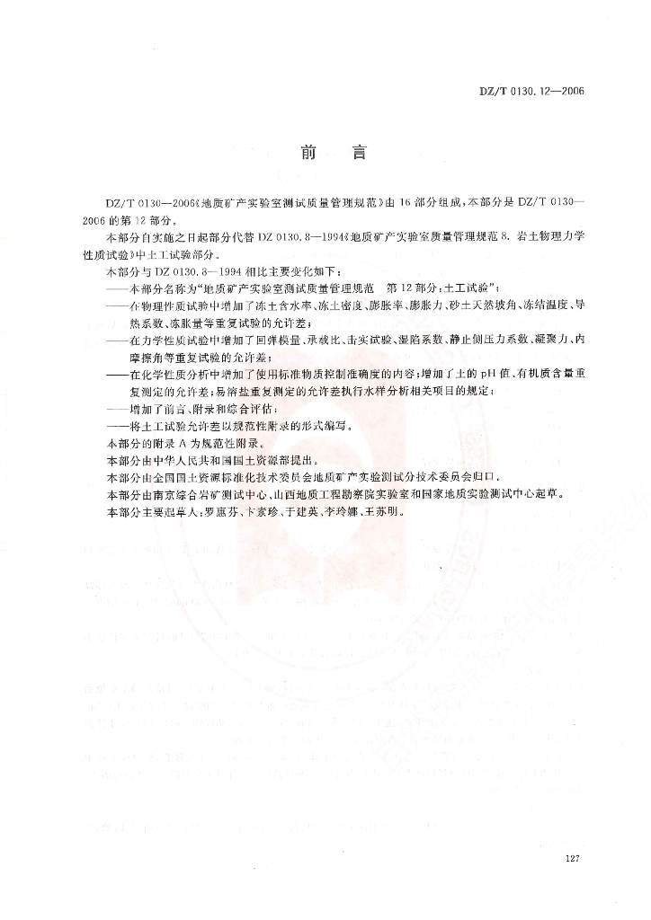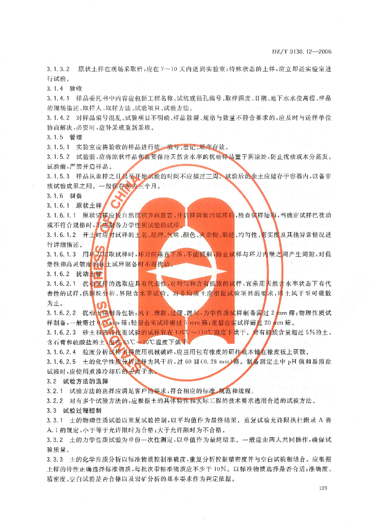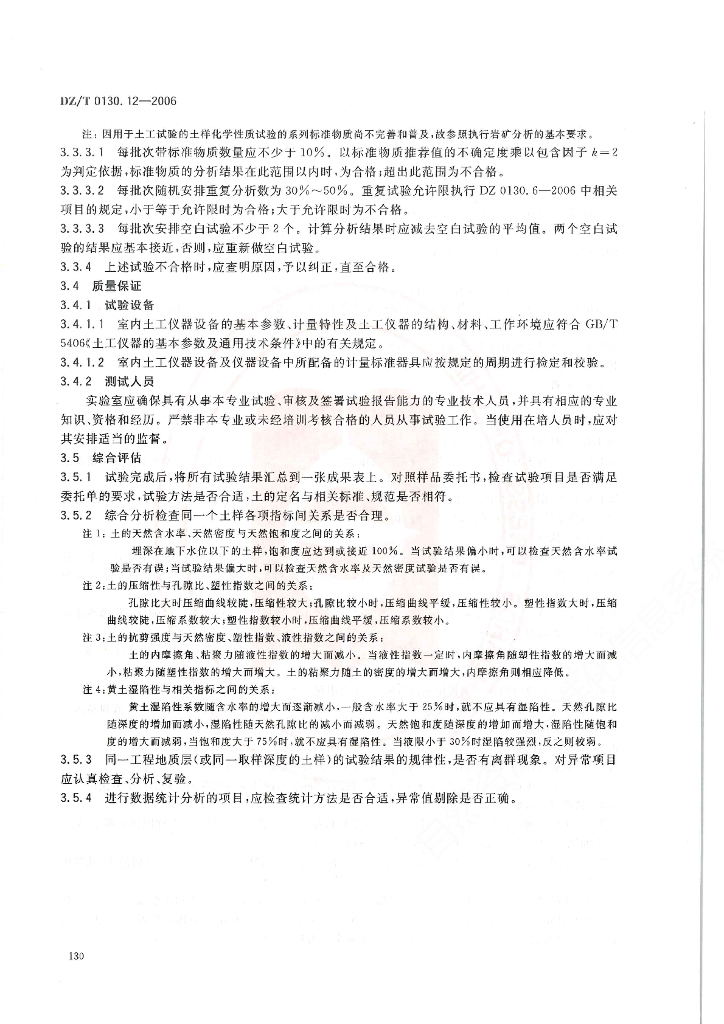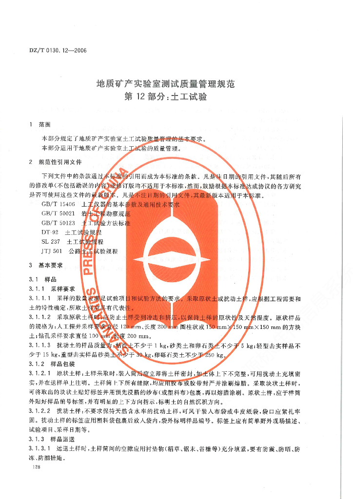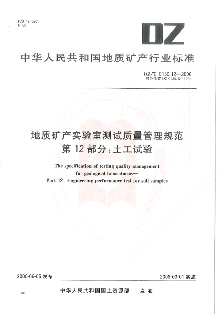 DZ/T 0130.12-2006 地质矿产实验室测试质量管理规范 第12部分:土工试验