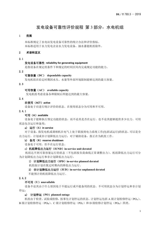 DL/T 793.3-2019 发电设备可靠性评价规程 第3部分:水电机组