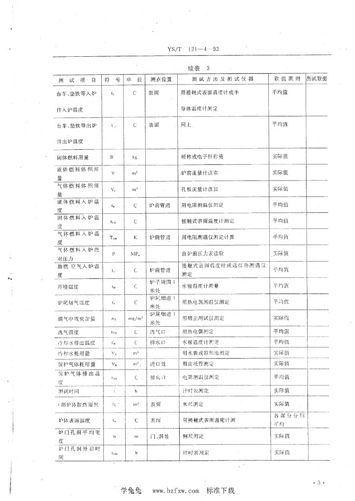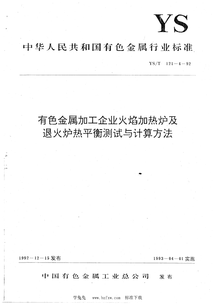 YS/T 121.4-1992 有色金属加工企业火焰加热炉及退火炉热平衡测试与计算方法