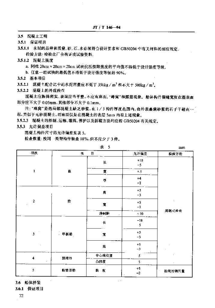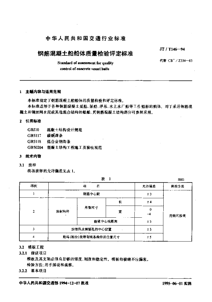 JT/T 146-1994 钢筋混凝土船船体质量检验评定标准