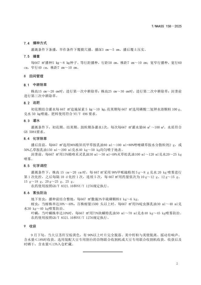 T/NAASS 158-2025 高油大豆高产栽培技术规程