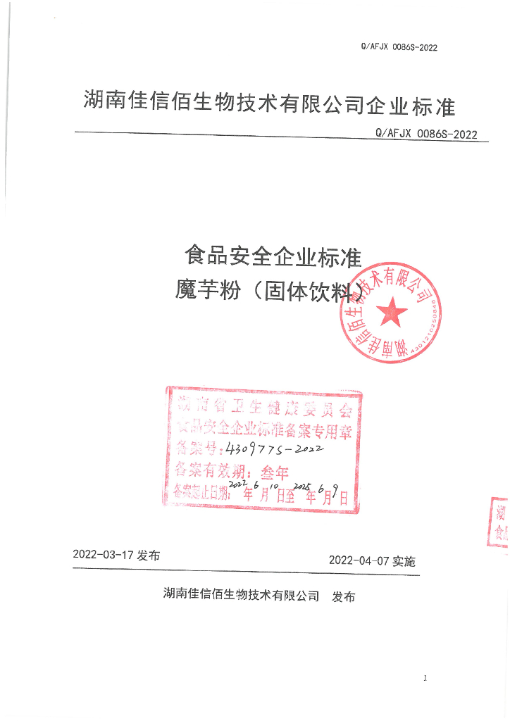 Q/AFJX 0086S-2022 魔芋粉(固体饮料)