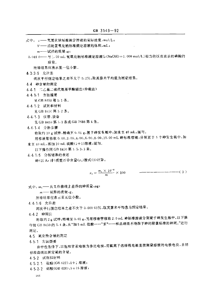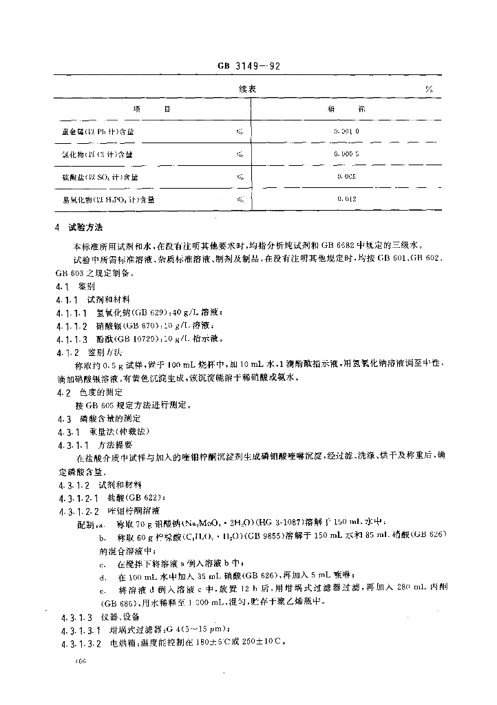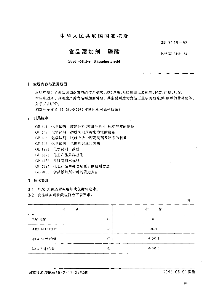 GB 3149-1992 食品添加剂 磷酸