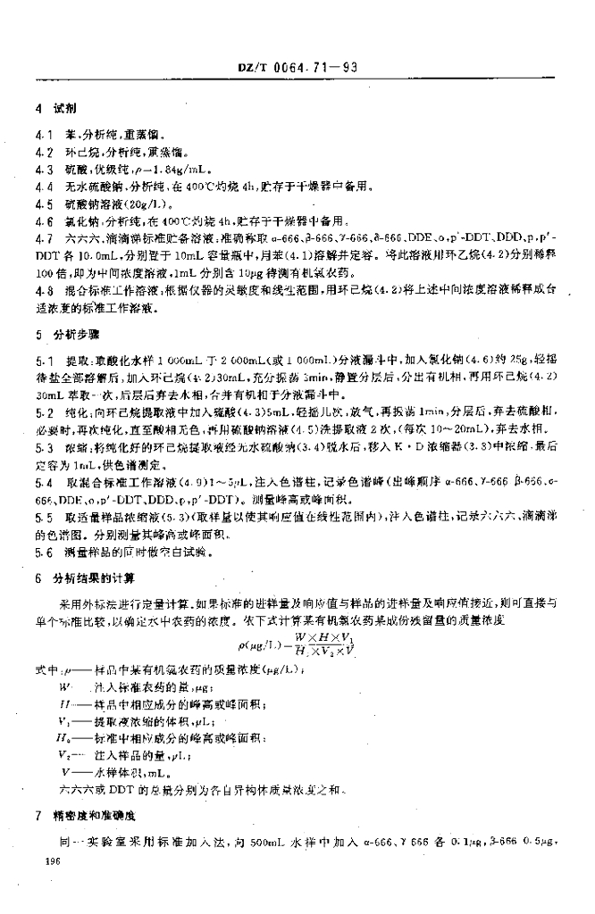 DZ/T 0064.71-1993 地下水质检验方法 气相色谱法测定有机氯残留量