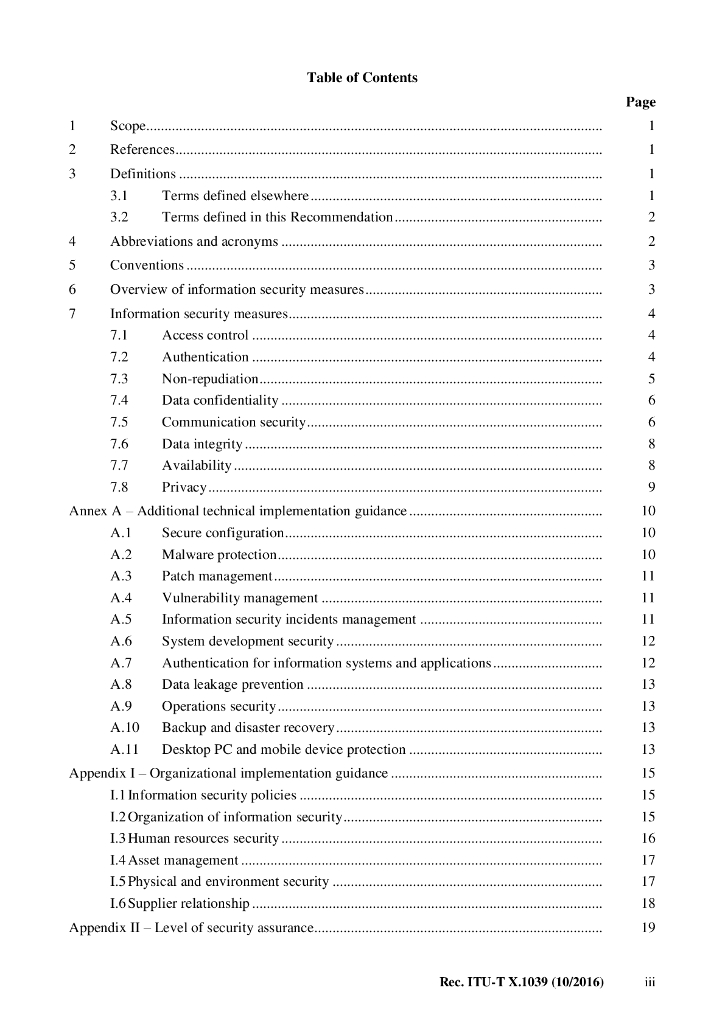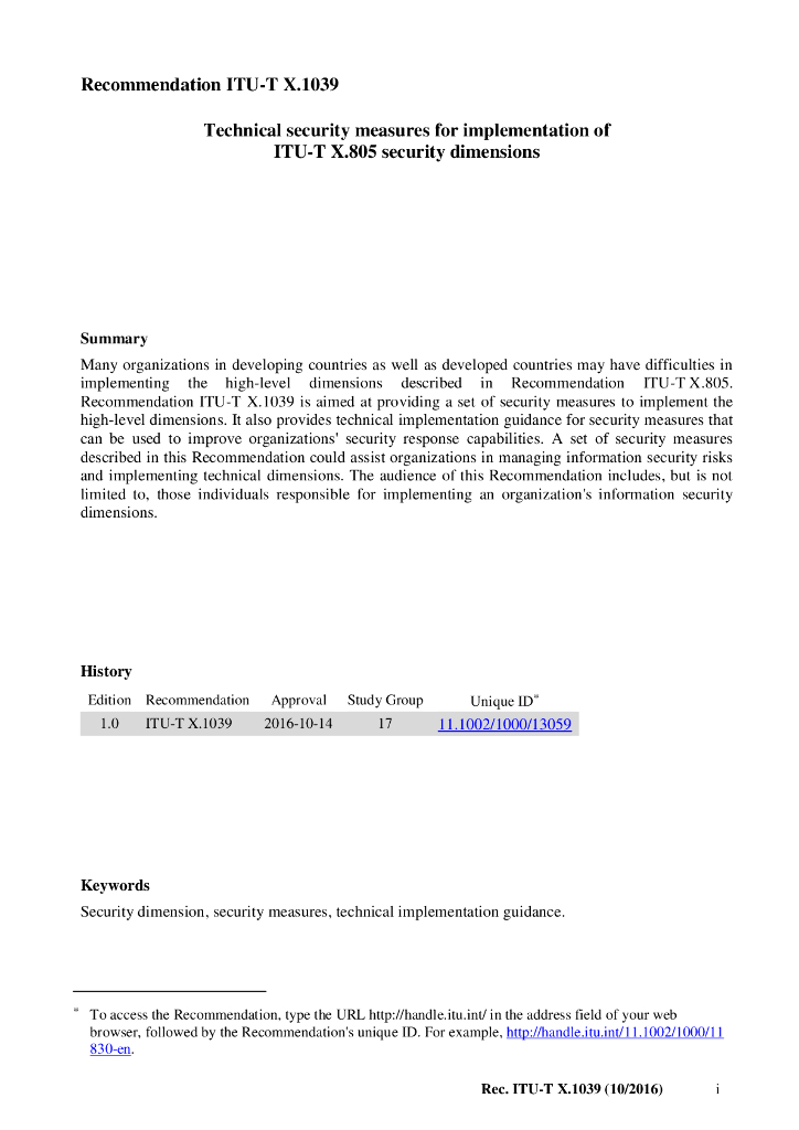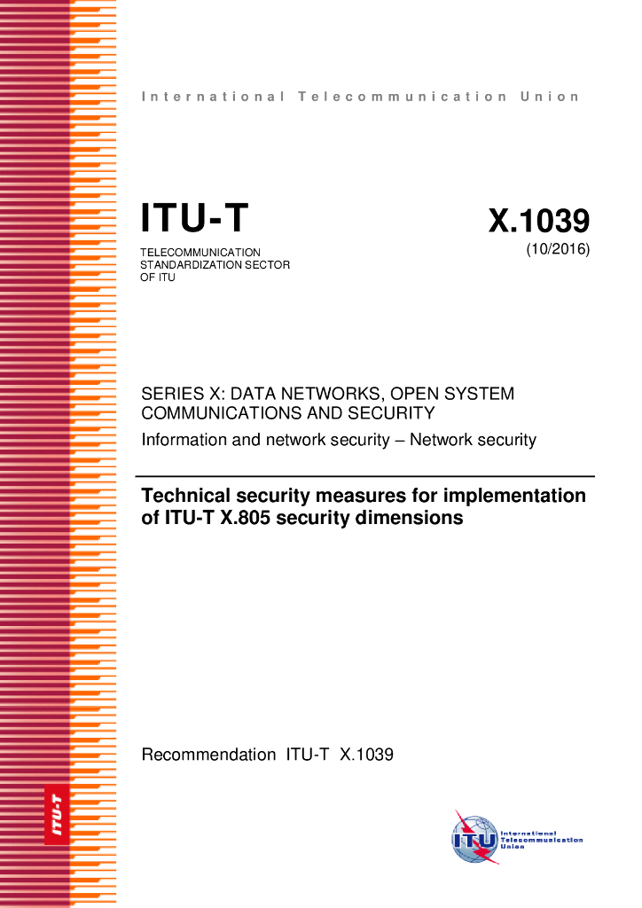 ITU-T X.1039-2016 实施ITU T X.805安全维度的技术安全措施