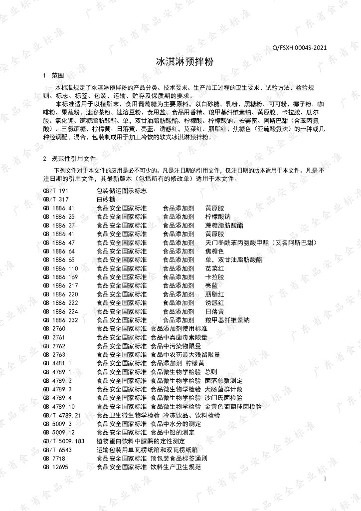 Q/FSXH 0004S-2021 冰淇淋预拌粉