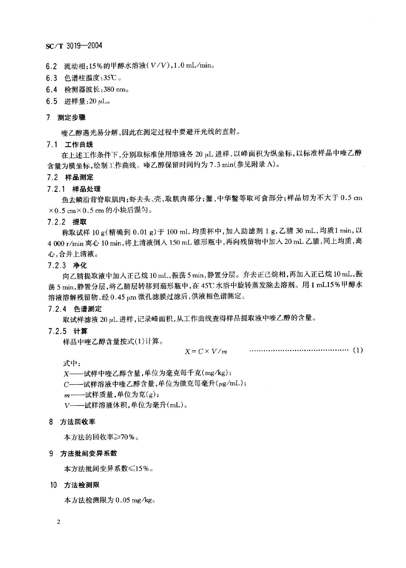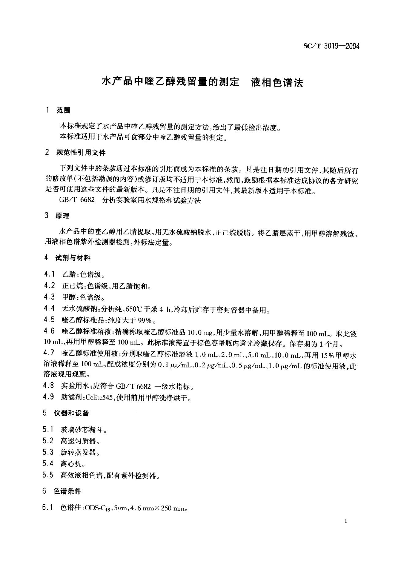SC/T 3019-2004 水产品中喹乙醇残留量的测定 液相色谱法