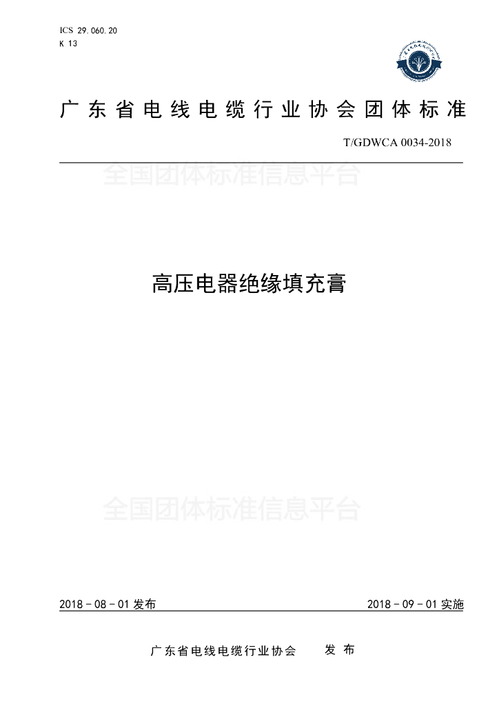 T/GDWCA 0034-2018 高压电器绝缘填充膏
