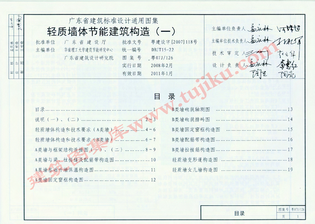 粤07J126 轻质墙体节能建筑构造(一)图集