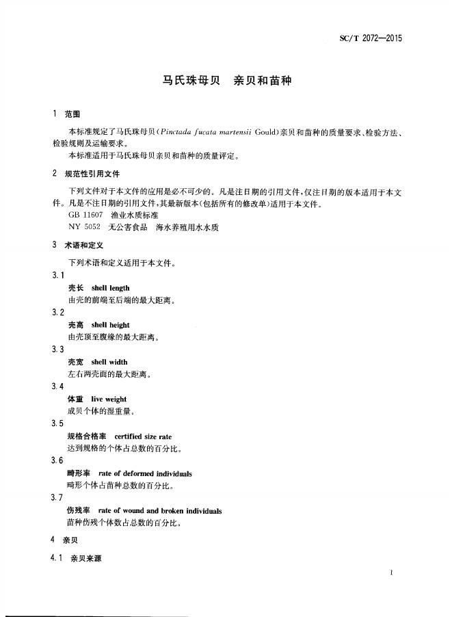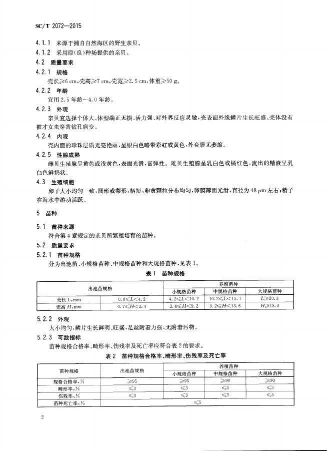 SC/T 2072-2015 马氏珠母贝 亲贝和苗种