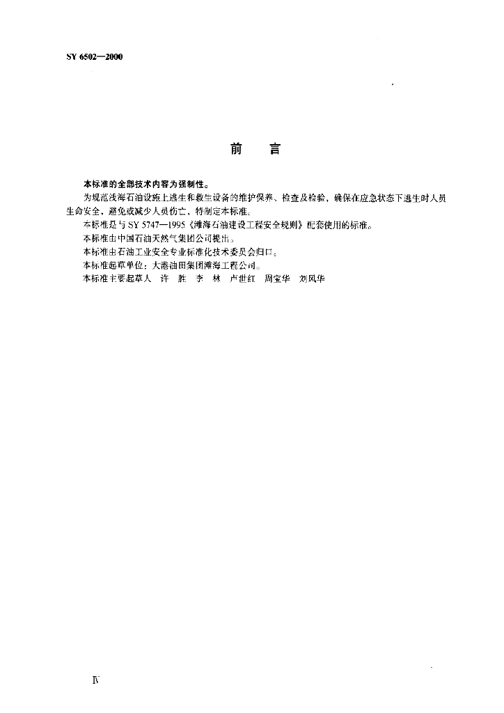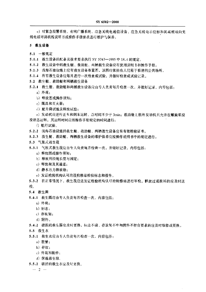 SY 6502-2000 浅海石油作业人员逃生和救生设备安全管理规定
