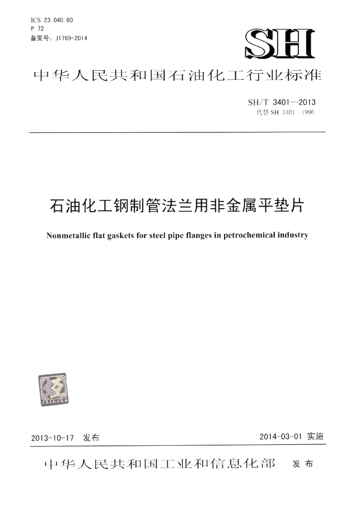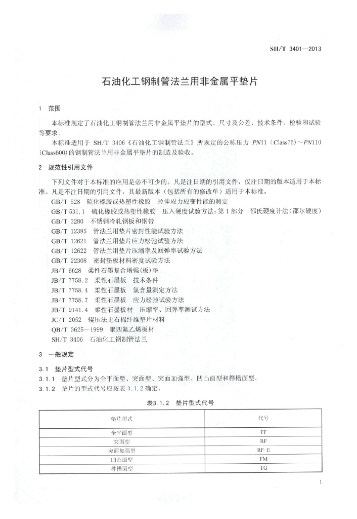 SH/T 3401-2013 石油化工钢制管法兰用非金属平垫片
