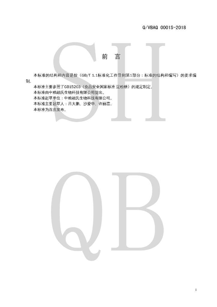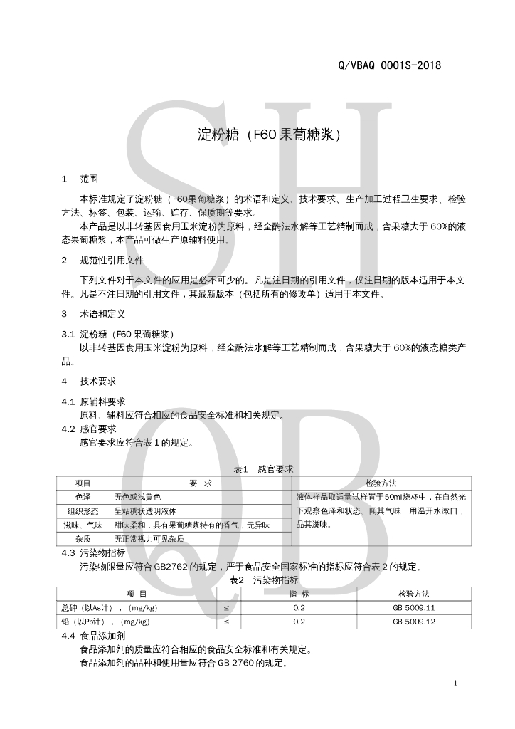 Q/VBAQ 0001S-2018 淀粉糖(F60果葡糖浆)