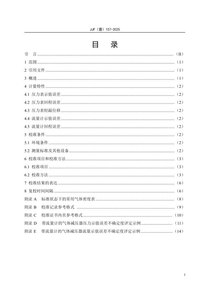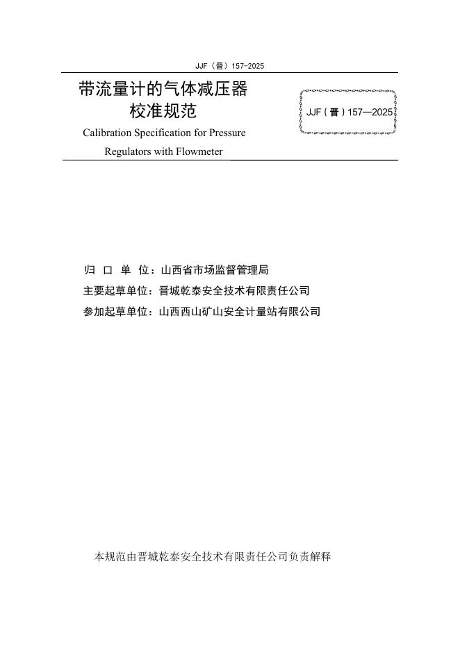 JJF(晋)157-2025 带流量计的气体减压器校准规范