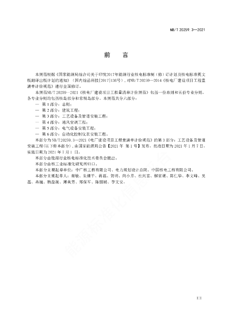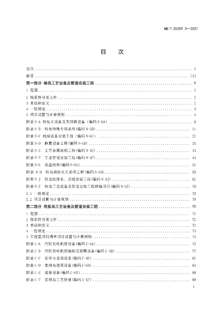 NB/T 20259.3-2021 核电厂建设项目工程量清单计价规范 第3部分:工艺设备及管道安装工程