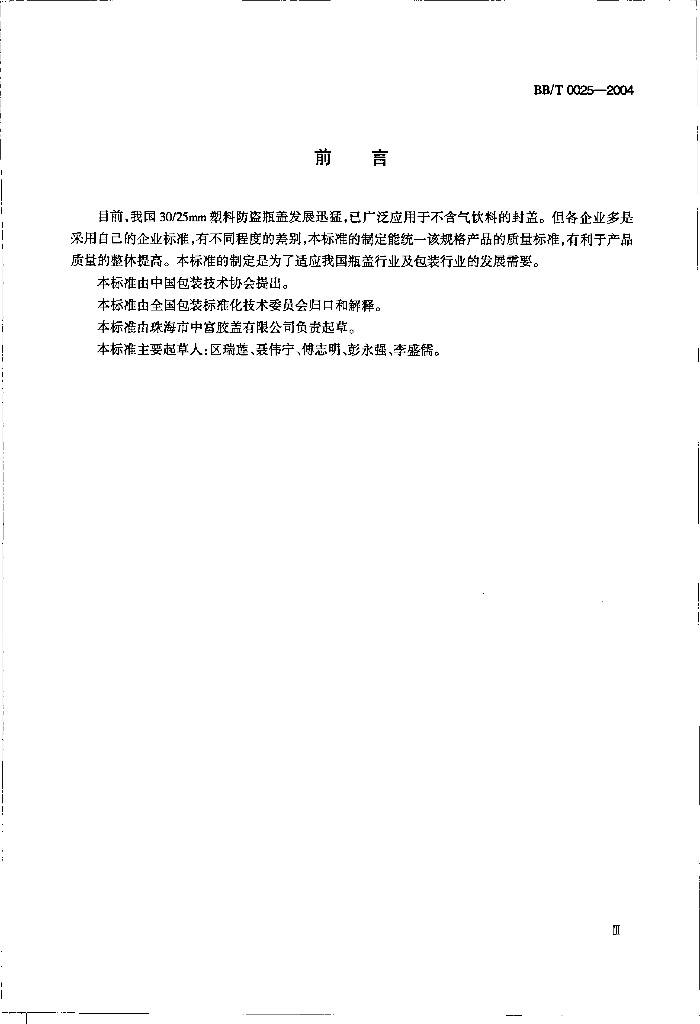 BB/T 0025-2004 30/25mm塑料防盗瓶盖