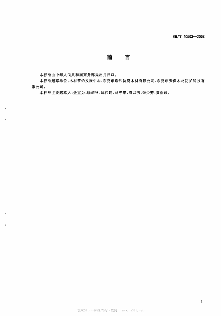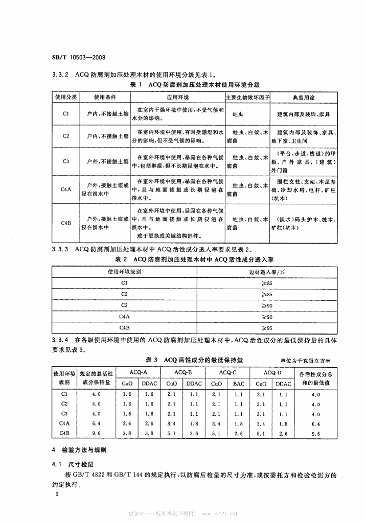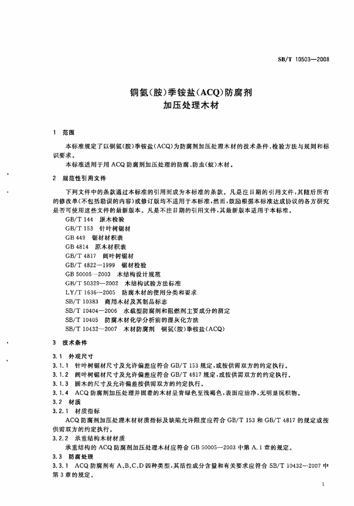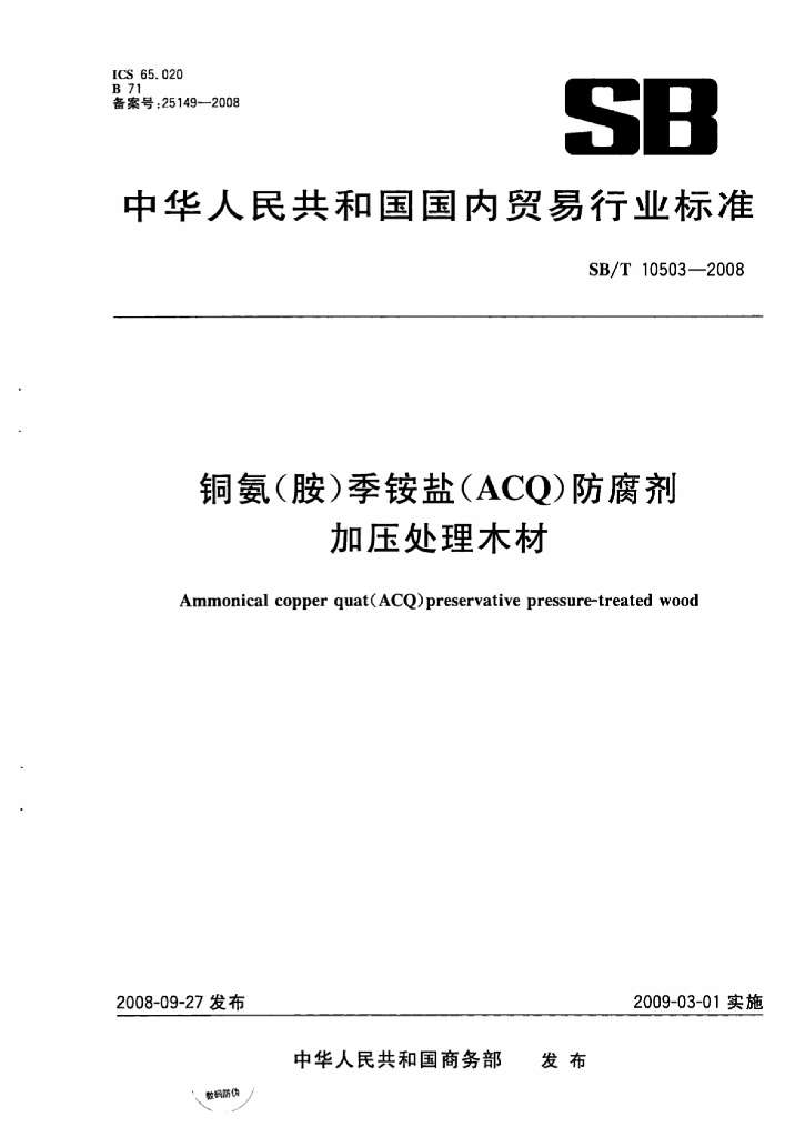 SB/T 10503-2008 铜氨(胺)季铵盐(ACQ)防腐剂加压处理木材