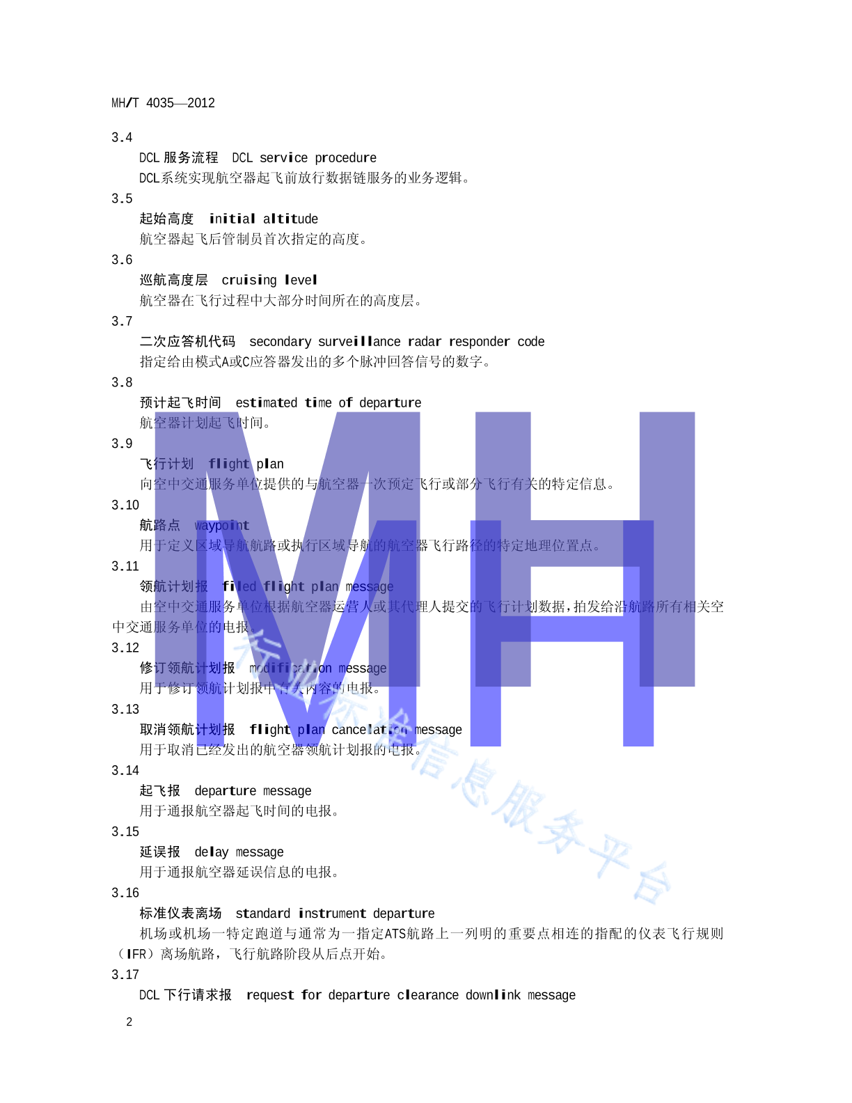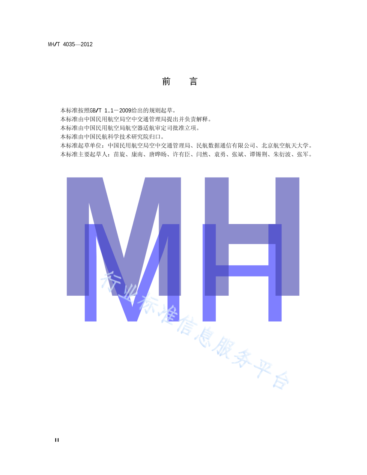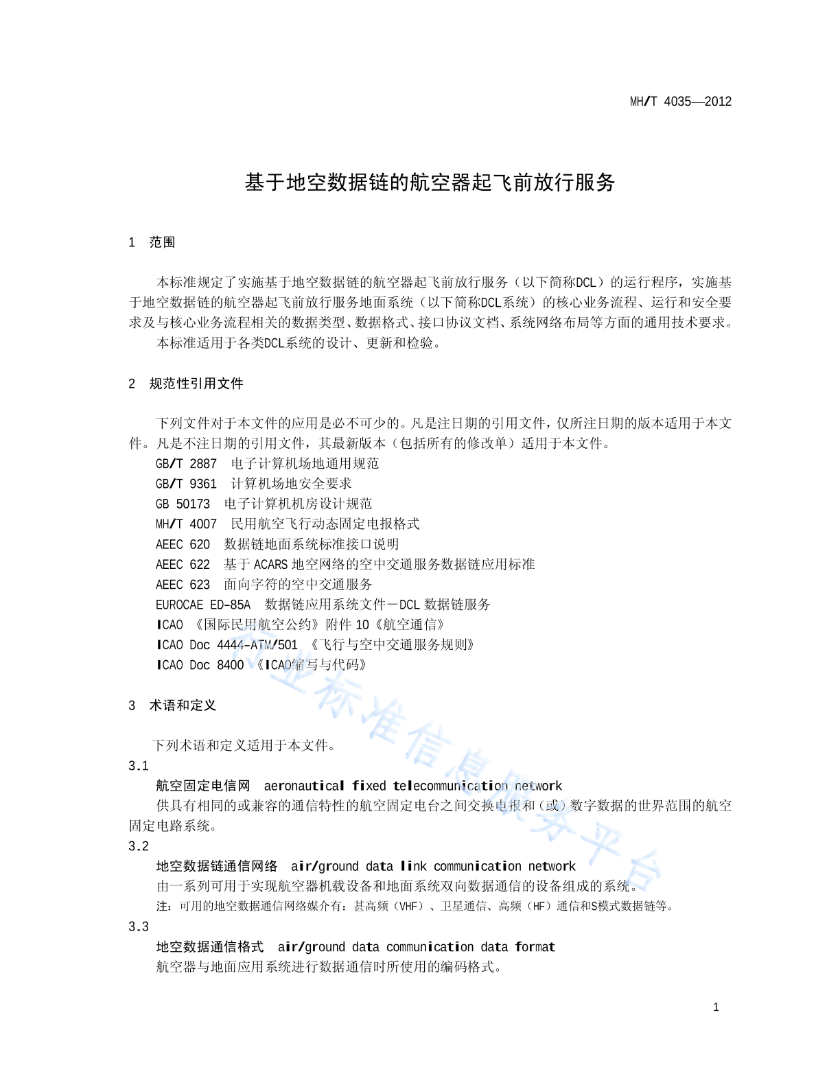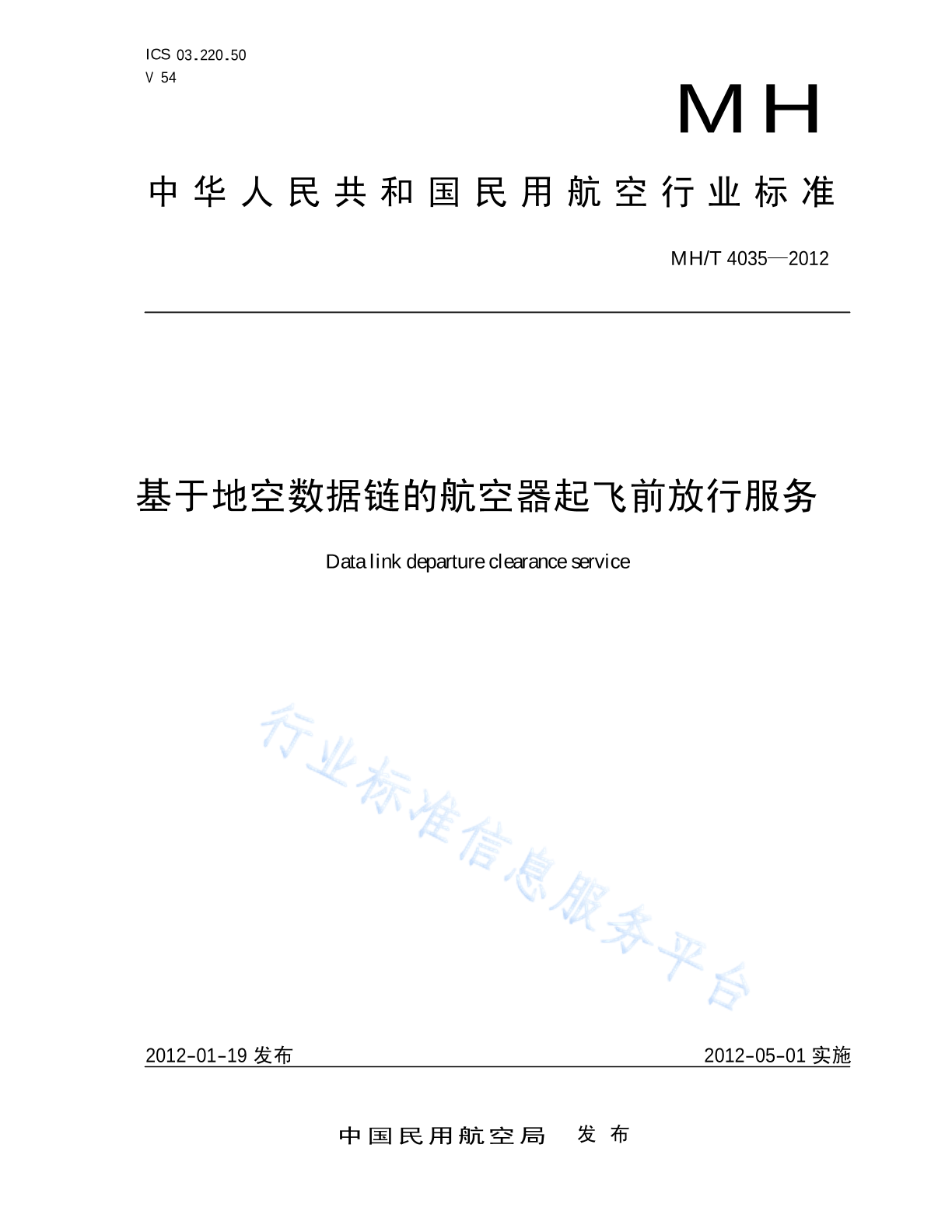 MH/T 4035-2012 基于地空数据链的航空器起飞前放行服务
