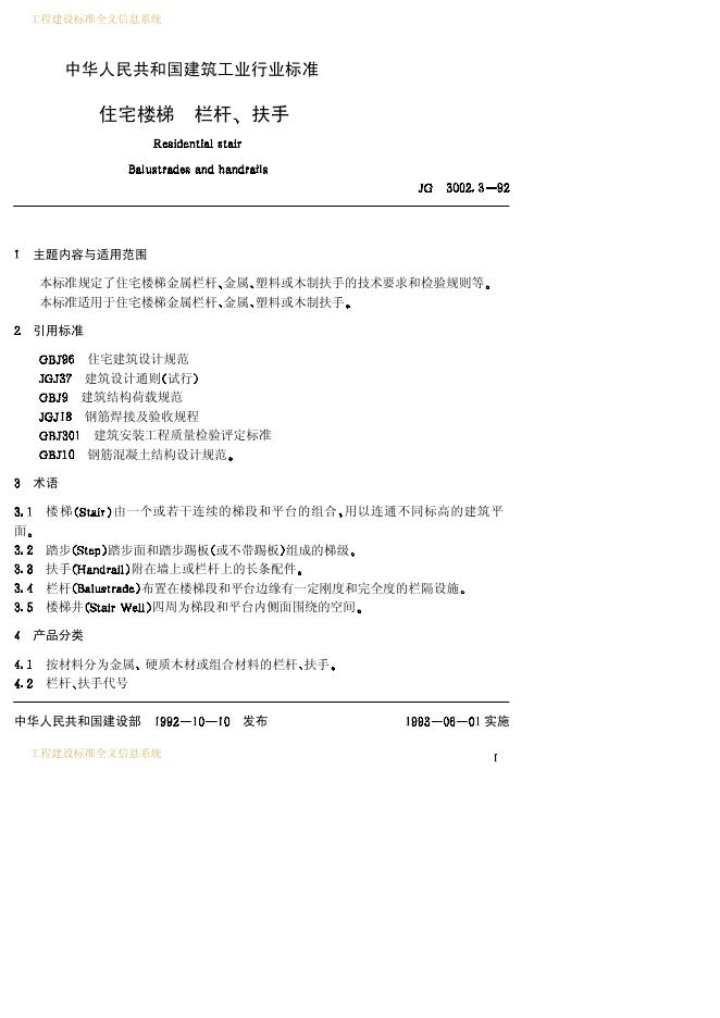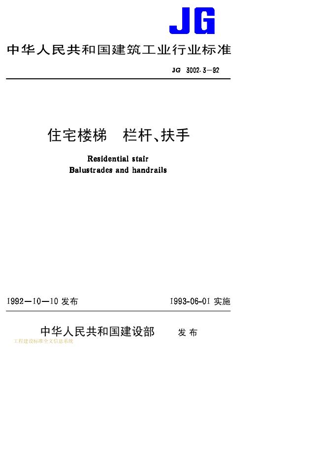 JG 3002.3-1992 住宅楼梯 栏杆、扶手