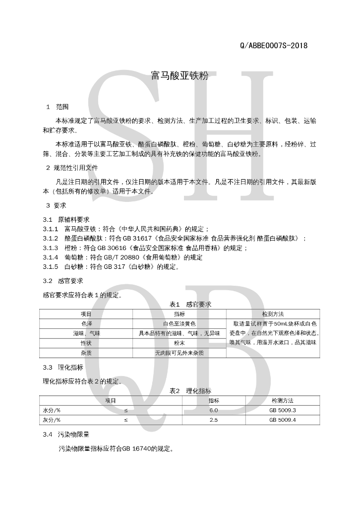 Q/ABBE 0007S-2018 富马酸亚铁粉