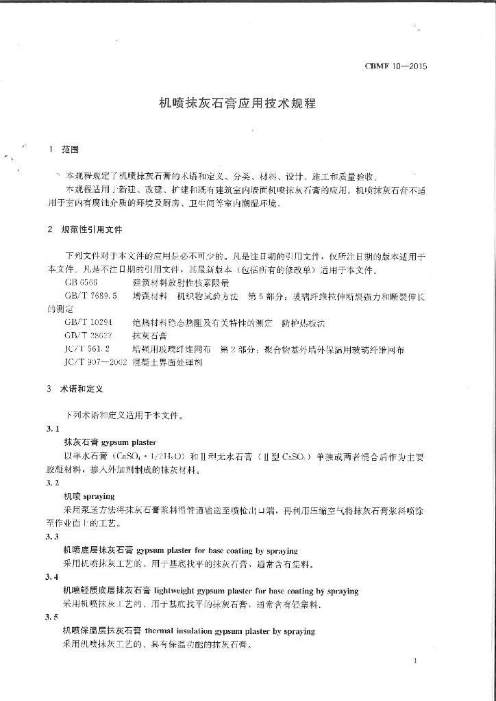 T/CBMF 10-2016 机喷抹灰石膏应用技术规程